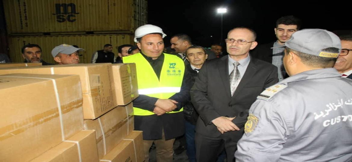 La délégation a visité les zones opérationnelles du port d'Annaba où elle a constaté de près le déroulement des activités commerciales relatives au chargement / déchargement des marchandises et au traitement des navires ainsi que les conditions de travail dans lesquelles ces dernières sont exercées. Des explications détaillées ont été fournies à cet haut responsable du Ministère des Transports par monsieur A.BOULARES sur les efforts managériaux déployés et les moyens mobilisés à l'effet de veiller sur la stricte application du régime de travail continu 24/24h et 7/7j en coordination étroite avec les principaux acteurs portuaires en l'occurrence l'Administration des Douanes et la Police des Frontières Maritimes, cette mesure d'excellence initiée par monsieur le Président de la République qui commence d'ores et déjà à donner ses fruits et à gagner davantage la satisfaction des opérateurs économiques fréquentant le port d'Annaba.